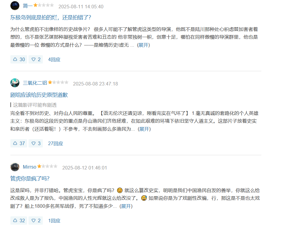电影多出有慢镜头特写一些暴力片段,刺激着我们的感官,感觉比较刻意,去百度搜索了一下,很大一部分的资料显示其实电影中这些暴行片段并没有出现在东极岛,可能导演就只是为了刺激观众的肾上腺素?